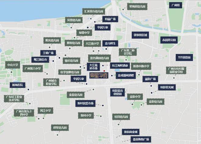 紫星华府对口小学是大江苑小学,小升初可对口直升省一级绿翠中学。项目周边还有广州市第六中学以及中山大学等知名院校。六中作为广州市最优质的学校之一,教学质量有口皆碑。中山大学作为国家 211、985 工程重点大学,广东省综合实力最好的大学,为区域带来了浓厚的学术氛围。此外,项目周边还有省一级的蓝色康园幼儿园、金苗幼儿园、客村小学、广东第二师范学院等多所学校,覆盖了从幼儿园到大学的全年龄段教育,为孩子的成长和发展提供了全方位的保障。