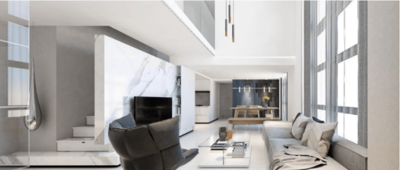 项目主打30-75㎡的双钥匙Loft户型,其中最小的34㎡户型适合单身贵族或年轻夫妇;51㎡的创想三空间则为小家庭提供了更多可能;最大的71㎡全景阳光Loft,凭借4.5米的层高,可以灵活划分出多个功能区域。所有住宅均为精装修交付,室内配备国际一线品牌的家电设备,如弗兰卡、高仪、西门子和伊莱克斯等,充分满足高端居住需求。