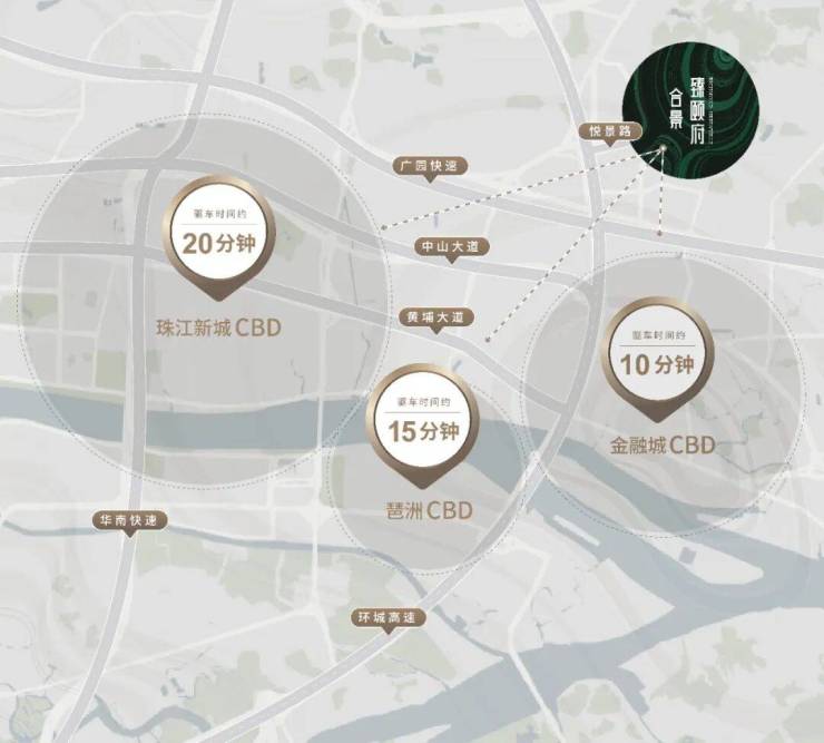 四横四纵的交通高速路网10分钟通达金融城、20分钟通达珠江新城