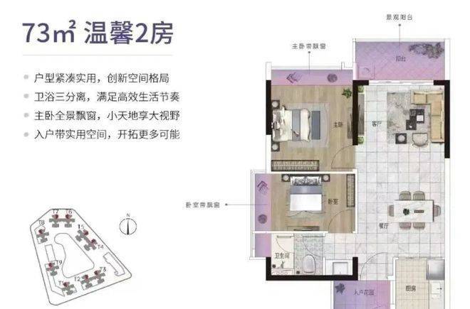 户型设计多样,有约 73 - 89 - 97 - 110 - 120㎡精装修二至四房,能满足不同家庭的需求。从整体户型来看,得房率达到 83% ,在空间利用上表现不错,相对较高的得房率为业主提供了更多实际使用空间,提升了居住性价比。各户型设计注重实用性和舒适性,无论是刚需购房者还是改善型家庭,都能在这里找到合适的户型。