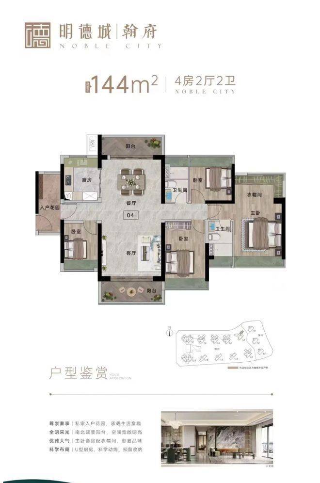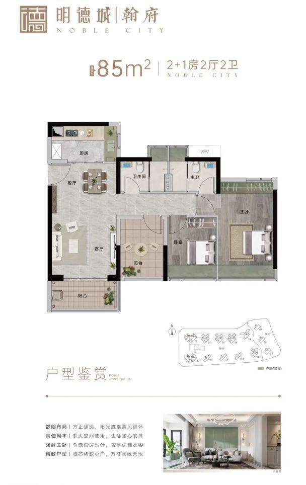 明德城由拥有 38 年深厚底蕴的东建集团匠心打造,作为禅桂中心的百万方综合体大城,其规模宏大,集多种城市功能于一体。项目共 10 栋楼,6000 户,翰府 1600 户,容积率 4,绿化率 30%,配备约 1200 个车位,总建筑面积达 100 万㎡ 。