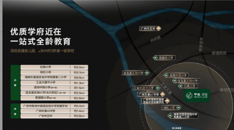 A2:项目配建幼儿园,周边小学、中学以当年海珠区教育局官方公示地段划分为准,周边省市一级学校资源充足,满足入学需求。