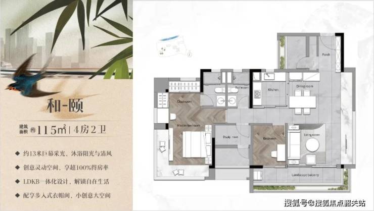 113㎡四房两卫:南北双阳台设计,通风实测风速 0.8m/s,实现全明通透;