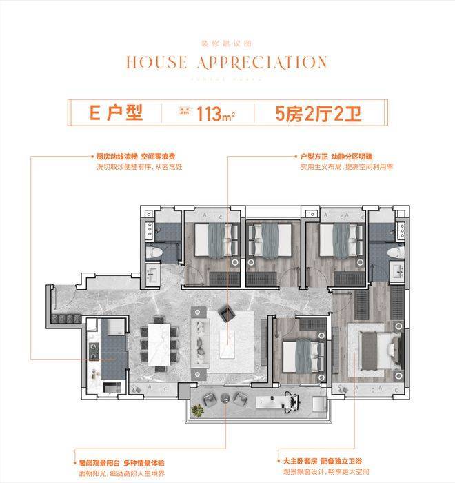 全新王炸横厅五房,三代家庭生活空间感更充足