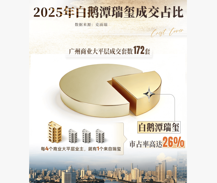 作为市场认可的塔尖资产,白鹅潭瑞玺凭借过硬的产品力与稀缺的资源优势,2025年登顶广州1000万+商业大平层销量TOP1(数据来源:克尔瑞);同门项目白鹅潭悦府2023-2024年连续霸榜荔湾区千万级豪宅TOP1,开盘不到两年几乎全面售罄,2023-2024年累计销售额接近92亿,其243㎡江景户型售价突破13万+/平,二手市场中楼层户型仍站稳11万+/平,用市场实绩印证了华润置地的产品实力与项目的资产价值。