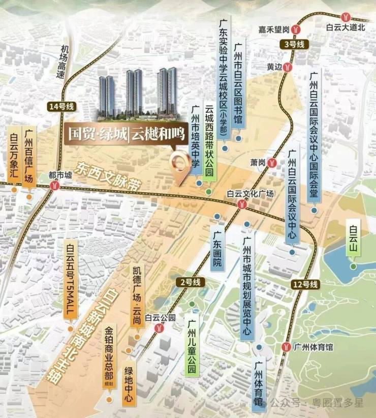• 地段与配套:位于白云新城中轴核心,距地铁2/12号线白云文化广场站约400米,步行5-8分钟可达,通勤天河、珠江新城约25-30分钟。