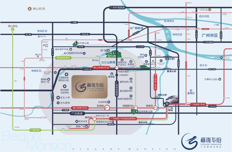 高速路网:广珠西线、广台高速、广佛江珠高速、东新高速四线环绕,快速通达广佛肇核心城区。