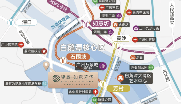 自驾出行同样便捷。项目紧邻芳村大道,通过洲头咀隧道、内环路可快速接入市中心路网。待如意坊二期高架道路建成后,区域通行效率将进一步提升,无论是前往天河CBD还是广佛交界,都将更加高效从容。