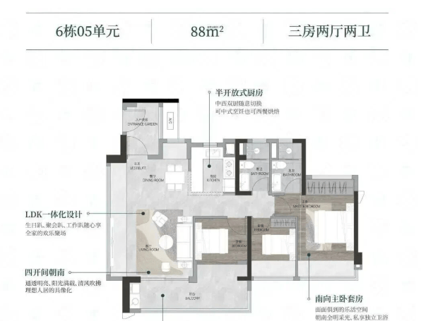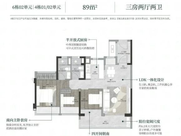 约88㎡、89㎡三房:紧凑实用,适合年轻家庭或首次改善;