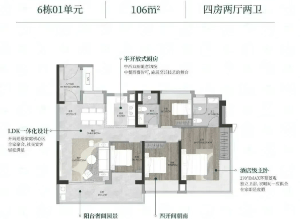 约106㎡、108㎡四房:空间阔绰,满足多孩家庭或三代同堂需求。
