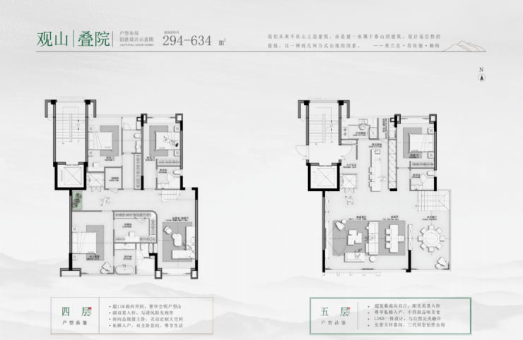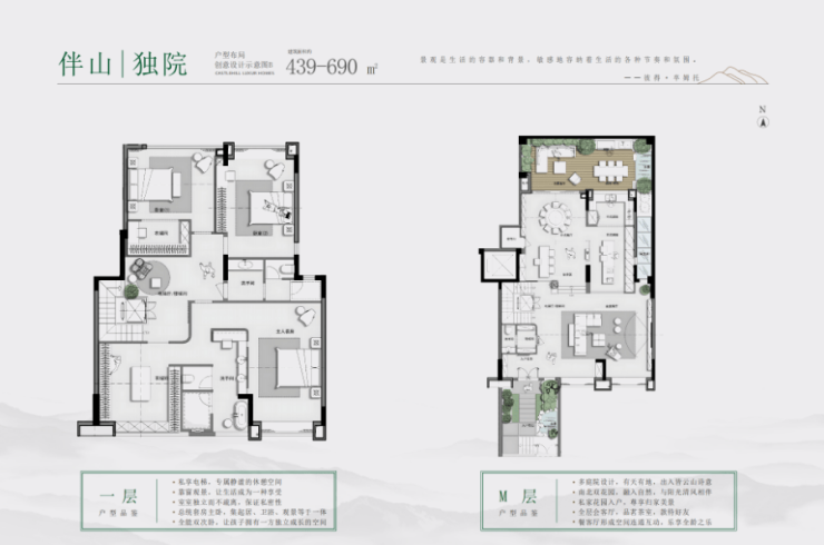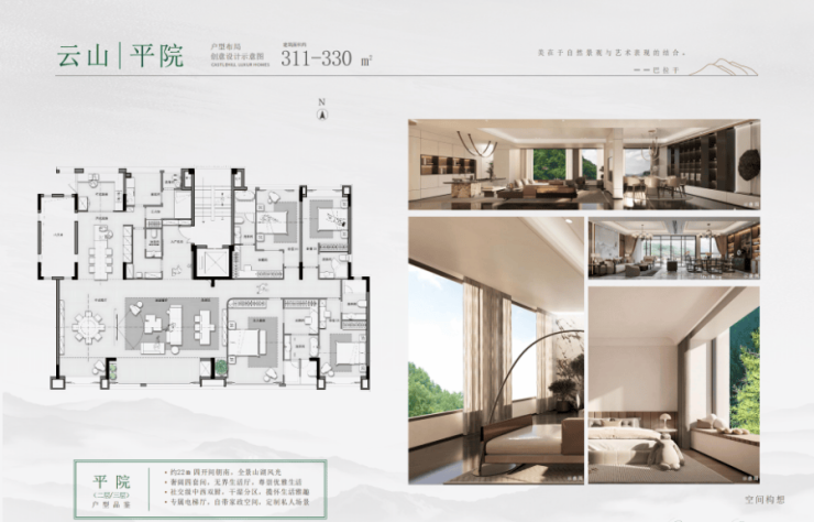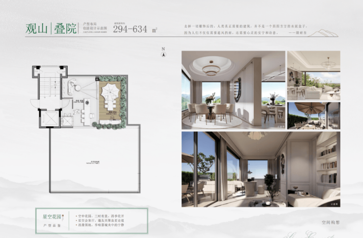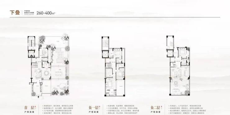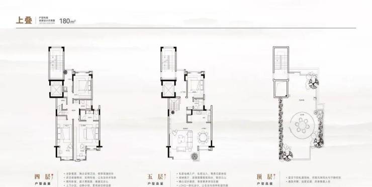 观善居(住宅):包括180㎡的大平层以及180-400㎡的上下叠院。每种户型都设计精美,注重生活品质和居住舒适度。