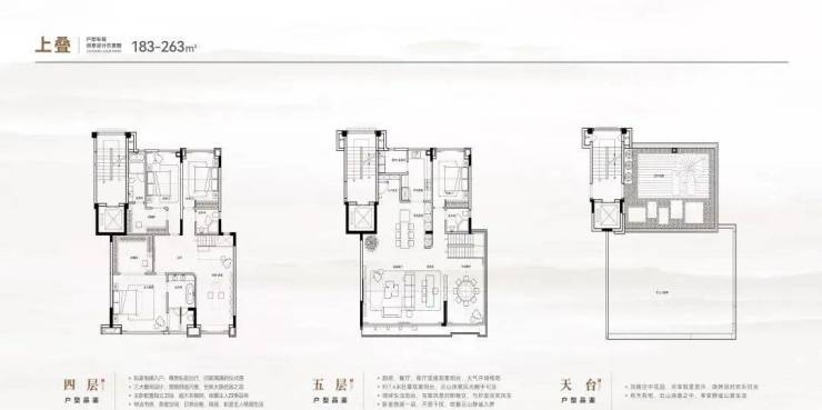 悦融居(商业):提供310-330㎡的大平层、183-263㎡的上叠以及400-515㎡的下叠。