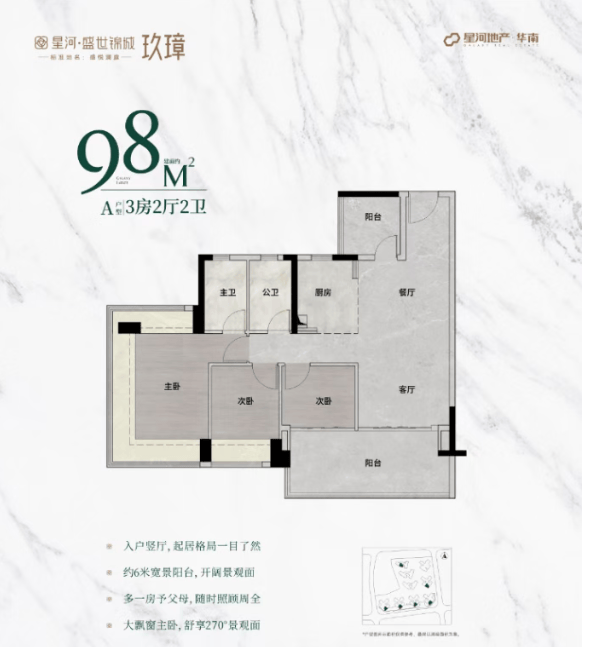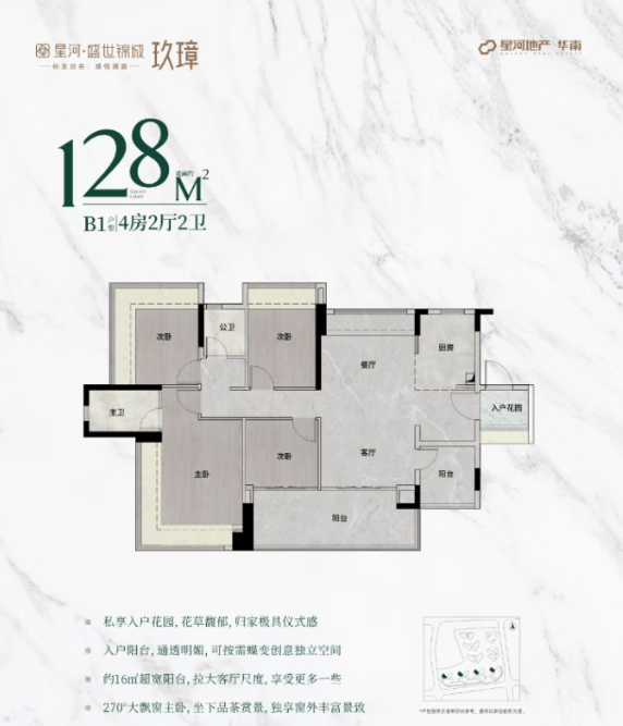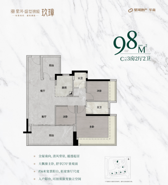 三期【玖璋组团】全南向排布,阳光充足,部分户型南北对流,实用率高达98%以上。主要在售户型包括98㎡、110㎡和128㎡三种,所有户型均配备宽敞的空间设计,如主卧270°无柱飘窗、独立入户花园等特色设计,提升居住体验。特别是128㎡户型,相较于二期136㎡户型,在厨房、客餐厅和主卧尺度等方面大幅提升,彰显尊贵风范。