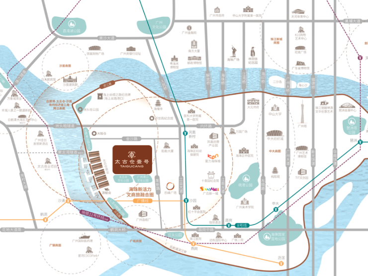 太古仓壹号位于白鹅潭CBD、聚龙湾及海珠西商圈的交汇处,拥有得天独厚的地理位置。双地铁环绕(8号线/广佛线),三维路网连接,四桥通达,交通便捷,无论是前往荔湾、越秀还是天河等中心区域都十分方便。