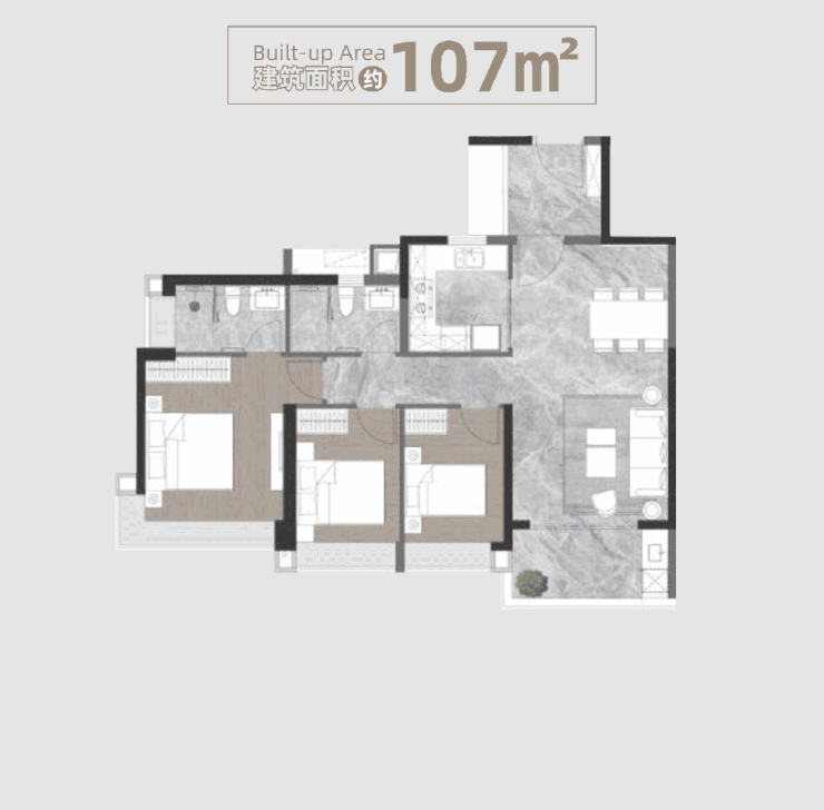 (二)107㎡三房两厅两卫:东南向通透,实用宜居