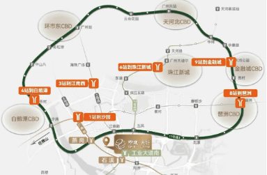 中建・天钰最大的亮点之一就是交通,项目位于广佛线燕岗站和石溪站之间,步行距离分别为 900 米和 750 米,步行 10 分钟内即可抵达。随着今年 10 号线工业大道南站的开通,项目实现三地铁交汇,去往海珠琶洲、天河珠江新城、越秀北京路等核心板块都十分便捷。