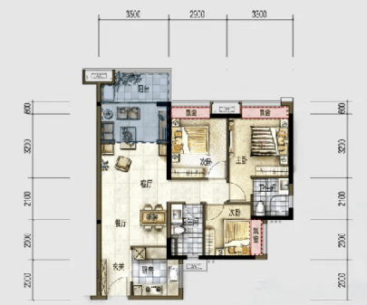 90㎡实用三房:朗阔客厅,一线江山美景尽在掌握。