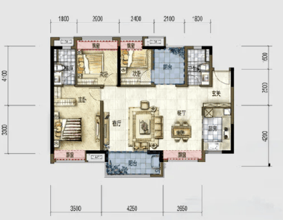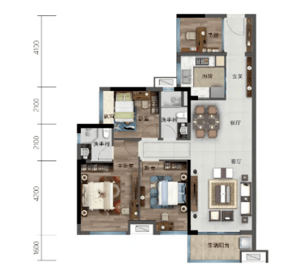 110㎡功能3+1房:瞰江揽园,无遮挡享受阳光清风。