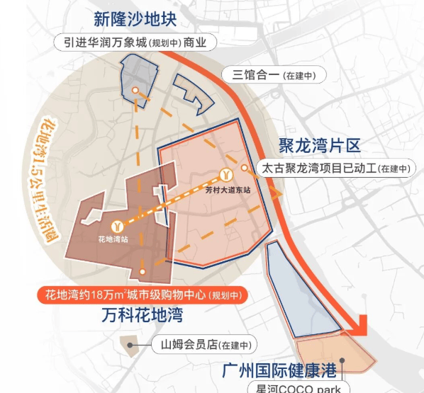 万汇天地·朗庭落子于广州荔湾花地湾核心腹地,地处白鹅潭世界商圈、聚龙组团与花地湾三大城市极点交汇的“黄金2公里圈”。这里,是国家粤港澳大湾区战略的重要支点,更是珠江西岸中央活力区(CAZ)的核心构成。