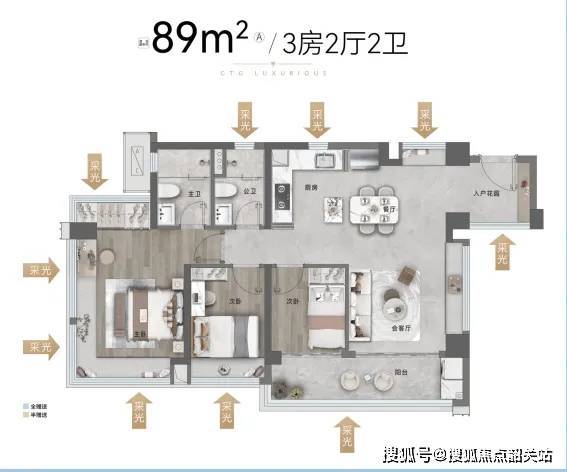 89㎡三房两厅两卫:南北通透,主卧套房设计,总价250-270万元;
