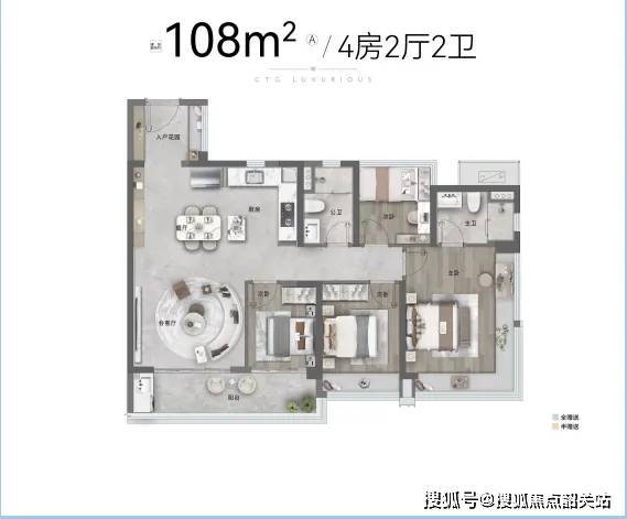 108㎡四房两厅两卫:横厅布局,7米阳台,总价300-320万元;