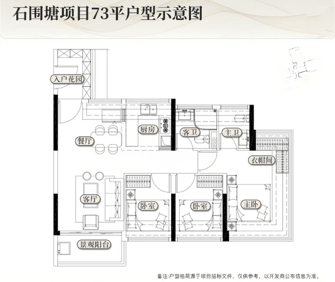【国贸·保利|海上印】在产品设计上展现出极强的创新能力,尤其体现在对小户型空间的高效利用上。项目主推建面约73平方米三房、87平方米四房及106平方米四房三种户型,使用率普遍达到110%起步,最高可达120%,远超市场平均水平。这一数据意味着,购房者实际可使用的室内面积远高于建筑面积,显著提升了居住舒适度与性价比。
