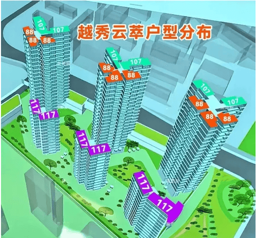越秀·云萃在售户型丰富多样,涵盖刚需、刚改、改善等多种户型,面积段合理,设计科学,结合“0飘窗”“V字板楼”等特色设计,提升空间使用率与居住舒适度,简洁实用,适配不同家庭的居住需求。