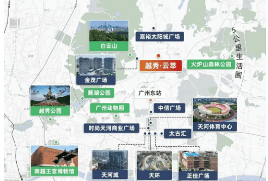 1. 地段优越:位于中轴之上,天河与白云交界处,距离珠江新城仅5公里,近享CBD发展红利,通勤、生活便捷度拉满。