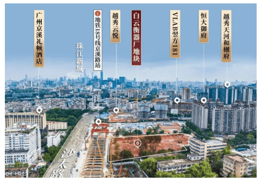 拿地时间:2025年4月30日,白云沙太路以西衡器厂地块开拍,越秀地产历经26轮竞价,以14.15亿总价竞得该地块,折合楼面价33624元/㎡,扣除配建后可售楼面价约3.8万/㎡。