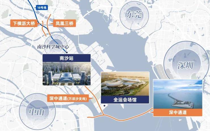 地铁方面,项目紧邻地铁3号线东涌站,直线距离约800米,步行约10分钟即可到达,3号线东涌站可直达番禺广场、广州南站、天河客运站等核心区域,其中到达番禺广场约20分钟,到达广州南站约15分钟,到达天河客运站约40分钟,便捷的地铁交通让业主轻松实现跨区出行。同时,地铁3号线东涌站未来将与深中通道南沙支线实现无缝衔接,深中通道南沙支线预计今年十月中旬开通,开通后,业主从项目出发,通过地铁3号线东涌站换乘深中通道南沙支线,约30分钟即可到达深圳宝安国际机场,约40分钟可到达深圳南山核心区域,真正实现了“穗深一小时生活圈”,进一步提升了项目的交通价值和区位优势。