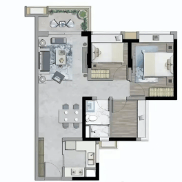 92㎡3 房 2 厅 2 卫:总价 268-288 万,主打实用性与舒适性兼具。三卧室设计可容纳三代同堂,双卫生间避免早晚使用高峰的拥挤,主卧带独立卫浴,保障主人隐私。客厅与餐厅一体化连通,延伸空间视觉感,阳台直面社区景观或山景,推窗即可享受自然绿意,适合对居住功能有更高要求的家庭。