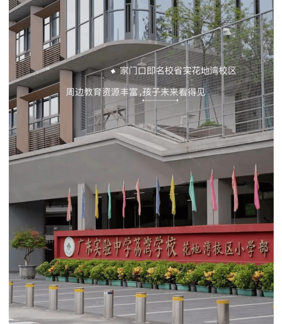 项目最大教育亮点是配建54班九年一贯制“广东实验中学花地湾学校”(小学36班+初中18班),已于2024年正式开学,直线距离仅300米,实现“家门口上学”。需注意的是,初中阶段仍需参与荔湾区统一电脑派位,并非直升,存在一定不确定性。但凭借省实品牌加持及片区整体教育水平,该学校已成为荔湾西部热门教育资源。周边另有芳村小学、真光中学等老牌名校,形成多层次教育网络,满足不同家庭需求。