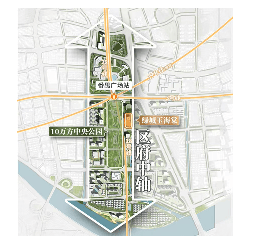 绿城·玉海棠择址广州番禺广场正芯,占据城市发展主轴与行政、文化、生态资源交汇点。番禺作为粤港澳大湾区重要枢纽城区,近年来持续推动TOD综合开发,而项目所在区域正是番禺“城市客厅”的核心承载地。周边汇聚区政府、基盛万科里、中银大厦等城市地标,未来还将联动约10万㎡中央公园(在建),形成集政务、商业、生态于一体的复合型城市中心。从区位能级来看,这里不仅是番禺的地理之心,更是未来十年城市界面焕新的焦点所在。随着地铁3号线、18号线、22号线及规划中的多条线路交汇于此,区域价值已进入加速兑现期。