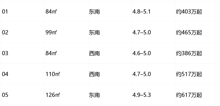 新世界云耀:105–143㎡,5.2–6.2万/㎡;