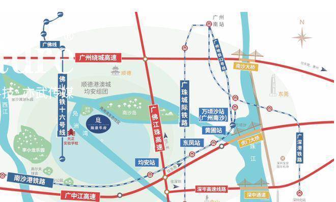 交通网络发达,出行便捷。广中江高速全线通车后,1 小时内可通达广佛中江四座城市,加强了与周边城市的联系,无论是商务出行还是休闲旅游都更加方便。依托深中通道,过桥约 30km 即达深圳宝安,进一步拓展了大湾区内的交通范围,全面贯通大湾区中心,为居民前往深圳等城市提供了便利。南沙港铁路已于 2021 年开通,佛山设均安站,这使得项目能够全面对接广州、东莞、深圳的轨道交通网,通过铁路出行可快速抵达大湾区多个重要城市,提升了居民的出行效率。