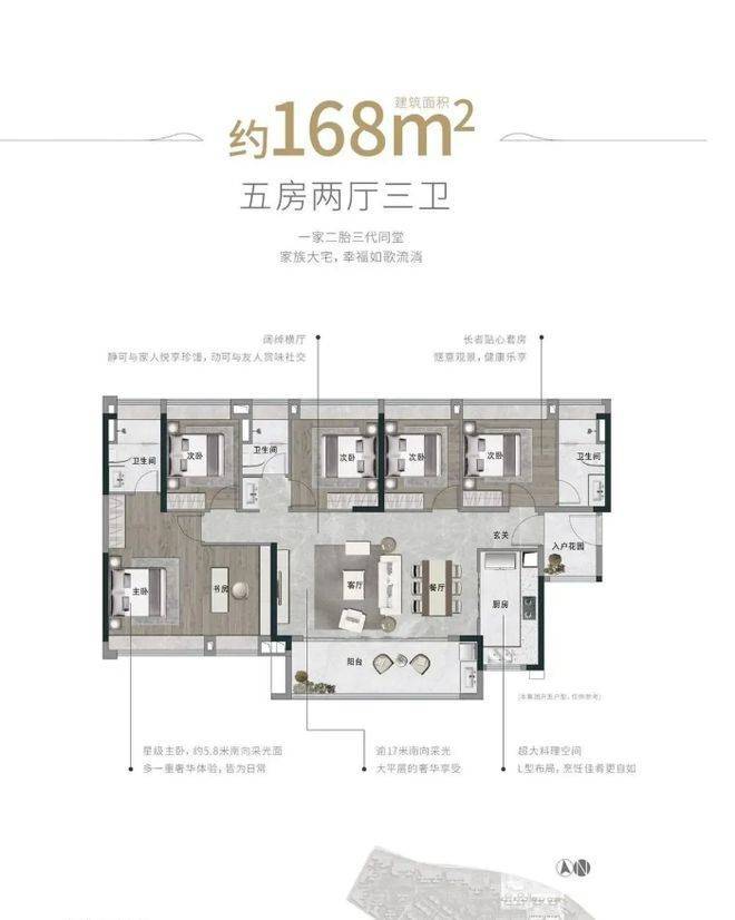 项目户型设计遵循新规,注重空间实用性与舒适性。主力户型为 89 - 168㎡三至五房,满足不同家庭结构需求。89㎡三房配备 5.8 米阔景阳台,视野开阔;128㎡四房南北对流,通风采光极佳。叠拼产品(159 - 163㎡)不仅拥有私密庭院,还能尽享景观资源,提升居住品质。81% 的得房率,让业主拥有更多实际使用空间,实现空间价值最大化。