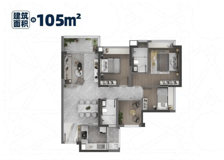 新世界云耀户型设计以实用与舒适并重 主推建面约105至143平方米三至四房户型 空间布局方正 开间大 采光通风俱佳 户户南向设计 室内动静分区合理 充分满足现代家庭多元生活需求 每一户都配有宽景阳台或空中花园 实现居住与自然的互动 打造真正意义上的云山景观住宅