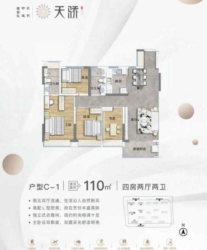 户型设计主打实用。主力户型 88 - 110㎡的三至四房,方正实用,部分户型带景观阳台或飘窗,空间布局合理。不过得房率因为板楼设计和风雨连廊计入公摊,部分户型相对低一些,像 110㎡户型公摊较大。但整体上,户型设计能满足不同家庭需求,全南向和户户南北通透的设计,采光通风好,居住起来还是很舒适的。