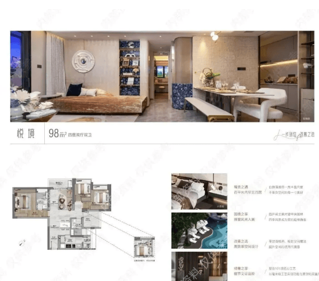 户型设计亮点满满,以第五代超新规产品为特色,采用 5.0 均衡空间设计,回归人本主义语境。(建面)约 76 - 108㎡的「超新规」阔景户型,空间利用高效,如 78 平做到三房还能望江,98 平打造出四房,满足家庭不同阶段的需求。(建面)约 126 - 139㎡的 270° 环幕江景大平层更是奢阔,南北对流,东南向江景风光无限。同时,配备高效敏捷的 LifeSmart 全屋智能家居系统,还有全屋智联系统、新风系统、中央直饮水系统、中央空调、热水循环系统五大体系,提升生活品质,打造健康舒适的室内微环境。