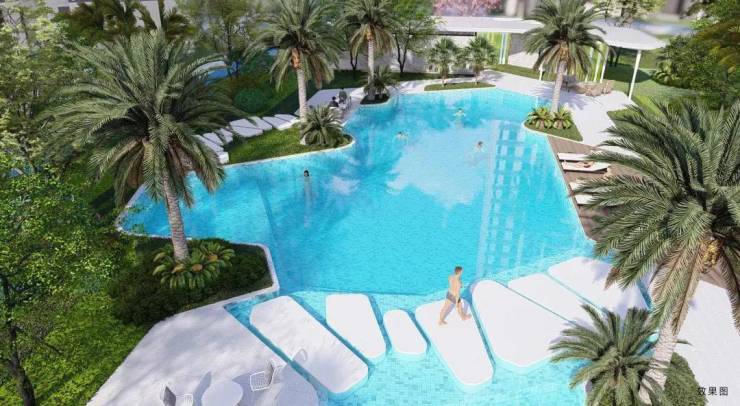 湾璟壹号采用围合式建筑布局,打造出难得的全龄中心大庭院。通过一环(健康跑道)、一轴(中央花园景观中轴)和五区(入口广场、草坪会客厅、亲子泳池、儿童空间、架空层泛会所),创造了“运动、玩乐、趣味、共享”的园林场景,真正实现了老少皆宜的生活体验。此外,项目还注重绿色生态的设计理念,让居民能够享受自然之美。