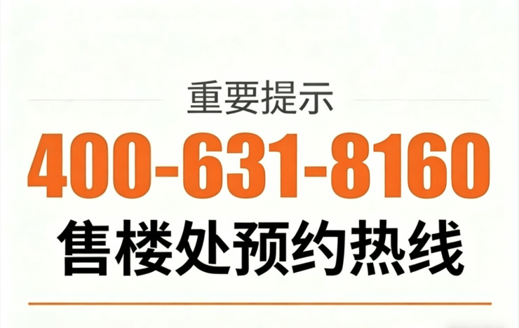 3. 预约看房福利:预约看房可享受专车接送服务,从您指定的地点直达项目售楼处,全程免费;现场看房可享受高端茶歇服务,同时有专业置业顾问一对一讲解,为您详细解读项目信息、户型特点、购房政策与专属福利,助力您做出明智的购房决策。咨询官方售楼处热线:400-631-8160,立即预约看房,解锁专属购房福利。