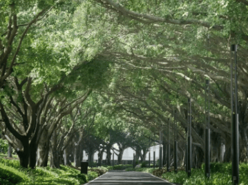 作为城市核心区罕见的大型低密度社区,南天名苑的规模与规划足以令人惊叹。项目总占地面积达 53 万㎡,建筑面积约 52.8 万㎡,却仅规划了 1200 户人家,搭配 1.08 的超低容积率和 30.4% 的绿化率,让每一位业主都能享受到充足的生活空间。平均下来,每户可享用约 440㎡的占地空间,这样的舒适尺度,在寸土寸金的广州主城区实属难得。社区内种植着约 800 株珍稀小叶榕,沿着 2.3 公里长的浓荫江堤蜿蜒分布,行走其间,江风拂面,绿意盎然,仿佛置身于天然氧吧之中。