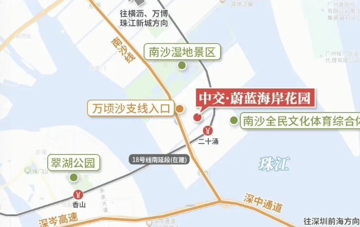 对于大湾区跨城通勤的精英客群而言,交通便捷度直接决定生活品质,中交蔚蓝海岸花园的交通配置堪称“大湾区通勤黄金枢纽”!项目距离在建的18号线南延线(南中城际)二十涌站仅约500米,该线路设计时速高达160公里/小时,分为东西两线:西线至中山市区(预计2027年通车),东线直抵珠海拱北口岸(计划2030年通车)。目前从万顷沙站搭乘18号线快车到冼村仅需30分钟左右,未来从项目出发到冼村约40分钟即可直达,轻松衔接广州主城核心商圈。