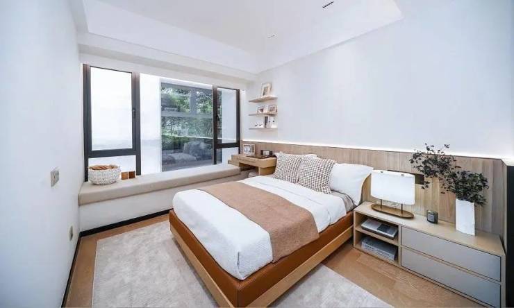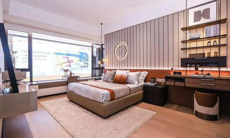 4. 主卧套间:打造270°景观主卧套间,配备独立卫生间,保障业主的私密性与舒适度,主卧采用全景飘窗设计,可欣赏南向江景与河涌景观,视野开阔,同时主卧空间宽敞,搭配独立衣帽间(预留空间),满足业主的居住需求与品质追求。
