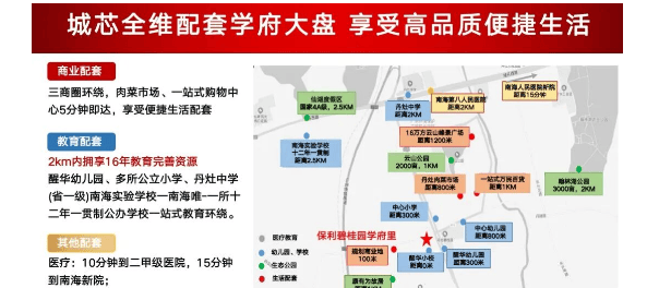 保利碧桂园学府里周边配套设施齐全,距离最近的生鲜肉菜市场仅800米,步行即可到达珍丰广场和万民百货等购物中心。此外,还有多家电影院和娱乐场所供居民选择,丰富业余生活。无论是购物还是休闲娱乐,都能在家门口得到满足。