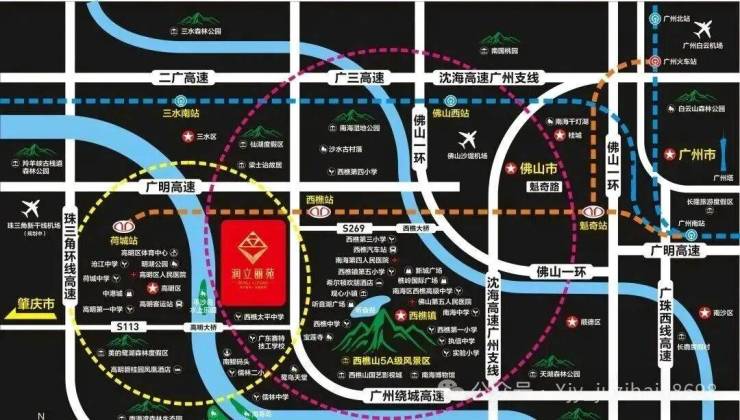 润立丽苑交通十分便捷。高速方面,5 分钟内可上广州环城高速,10 分钟可上广明高速,20 分钟左右车程可轻松抵达南庄禅城、丹灶、高明等地,30 分钟内可直达狮山、罗村、桂城,约 40 分钟可直达广州、江门等城市,大大缩短了城市间的时空距离,方便居民的商务出行和休闲旅游。公交方面,项目门口设有 906、212 公交站,可直达西樵和山水城,满足居民日常短途出行需求。此外,附近 1.5 公里规划有佛山地铁 2 号线官太路站,未来地铁的开通将进一步提升项目的交通便利性,加强与城市其他区域的联系。