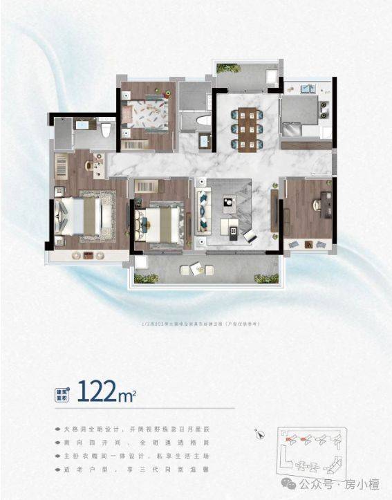 户型设计上,这个项目做得比较用心,尽量照顾到不同家庭结构的需求。78㎡这个小户型其实是经典的2+1格局,空间灵动,改造成三房或者保留大书房都很灵活,适合年轻人或者小两口过渡使用。95㎡的三房两厅两卫,三开间朝南设计,客厅连着超大景观阳台,采光通风都很不错,整体方正实用。107㎡的三房两厅两卫则放大成3+1格局,横厅设计让客厅显得更开阔大气,三代同堂或者偶尔来老人住都比较从容。122㎡的四房两厅两卫户型则主打南北双阳台,南北通透,视野开阔,适合对居住舒适度要求更高的改善家庭。