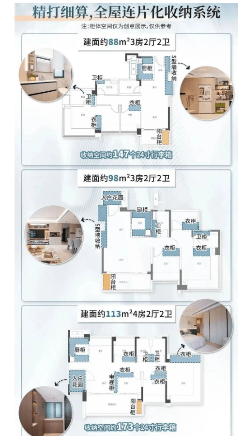 产品力是华润置地·黄埔润府最核心的竞争力。项目主推建面约88㎡、98㎡及113㎡的三至四房户型,全部采用全南向布局,采光通风极佳。得益于广州新规的红利,这些户型的使用率得到了显著提升,部分户型甚至突破了传统得房率的极限。88㎡户型巧妙设计为紧凑三房,通过LDK一体化布局,让客餐厅空间显得宽敞明亮,非常适合年轻刚需家庭;98㎡户型则升级为舒适三房或灵动四房,东南侧的梯腿位置使其拥有更佳的景观视野,主卧套房设计兼顾了私密与舒适;113㎡户型位于北侧梯腿,做到了正规四房两厅两卫,动静分区合理,满足了多代同堂家庭的居住需求。所有户型均注重收纳系统的设计,玄关、厨房、卧室等空间均预留了充足的储物位置,极大地提升了居住的实用性与整洁度。这种“小面积、多房间、高得房”的产品策略,精准击中了当下购房者对空间效率的痛点,让每一分钱都花在了刀刃上。