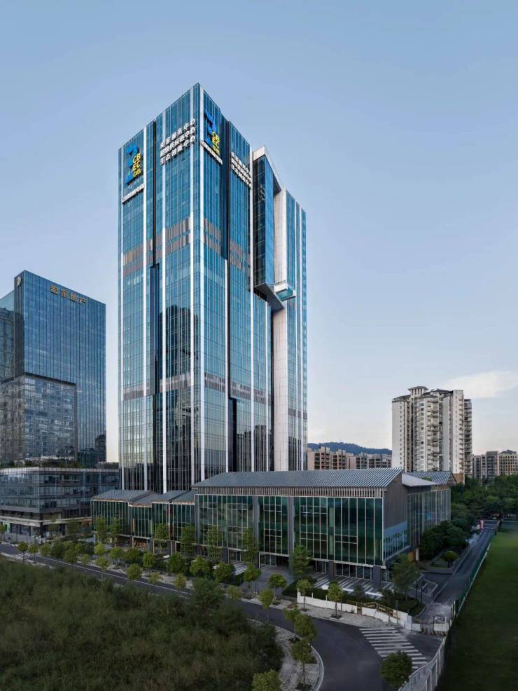 项目外立面以复合铝板、超白玻璃为主,透过规整建筑立面构件,跟随光线产生有韵律的阴影变换,创造动静皆宜的立面效果。区别于将机房放置在泳池正下方的一般做法,项目设备被藏在下层塔楼中,确保泳池轻盈感,更让泳池日后运营维护更便利。风洞实验按实际荷载加在结构上,用精准计算确保超高层连体结构安全,针对风穿过楼体时空间突然收窄导致的局部风压增大情况,通过 “窗” 的设计削减超高层结构承受的力,保障建筑稳定性。