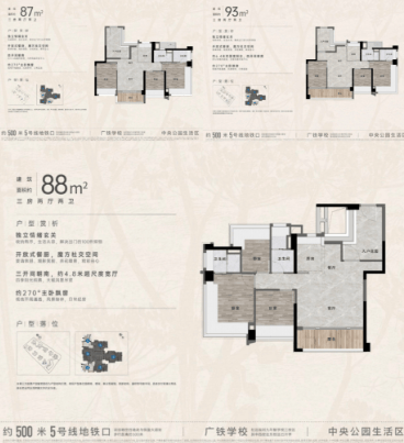 万科黄埔新城中央公园组团9、10栋打造超新规高得房率户型,涵盖70-139㎡三至四房,得房率高达130%,空间利用率冠绝市场。9栋总层高50层,3梯6户设计,面积段70-139㎡,预计2028年9月收楼;10栋总层高32层,2梯5户设计,面积段84-137㎡,预计2027年12月收楼。主力88㎡三房户型,全明通透、三开间朝南,LDK一体化设计,空间开阔实用,总价200万出头即可上车。93㎡三房户型,客厅开间宽敞,空间感媲美市面110㎡户型,舒适度拉满。99-108㎡四房户型,实用紧凑、功能齐全,总价260万起,性价比突出。133-138㎡四房户型,阔绰空间、双卫设计,满足改善需求。所有户型通过阳台半计容、飘窗不计容等设计,最大化拓展使用空间,同等面积享受更大居住空间,稀缺价值不言而喻。